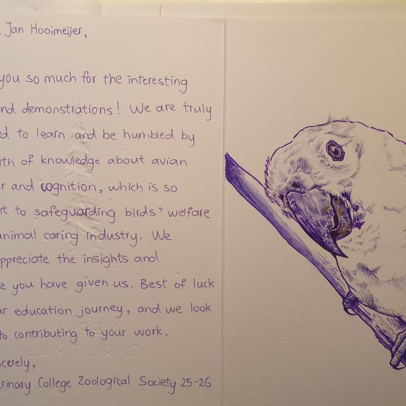 In het weekend van 3 mei 2025 reisde Jan Hooimeijer ‘even’ af naar Virginia (USA) om daar een tweedaags seminar te geven aan studenten Diergeneeskunde, collega’s en eigenaren van papegaaien.