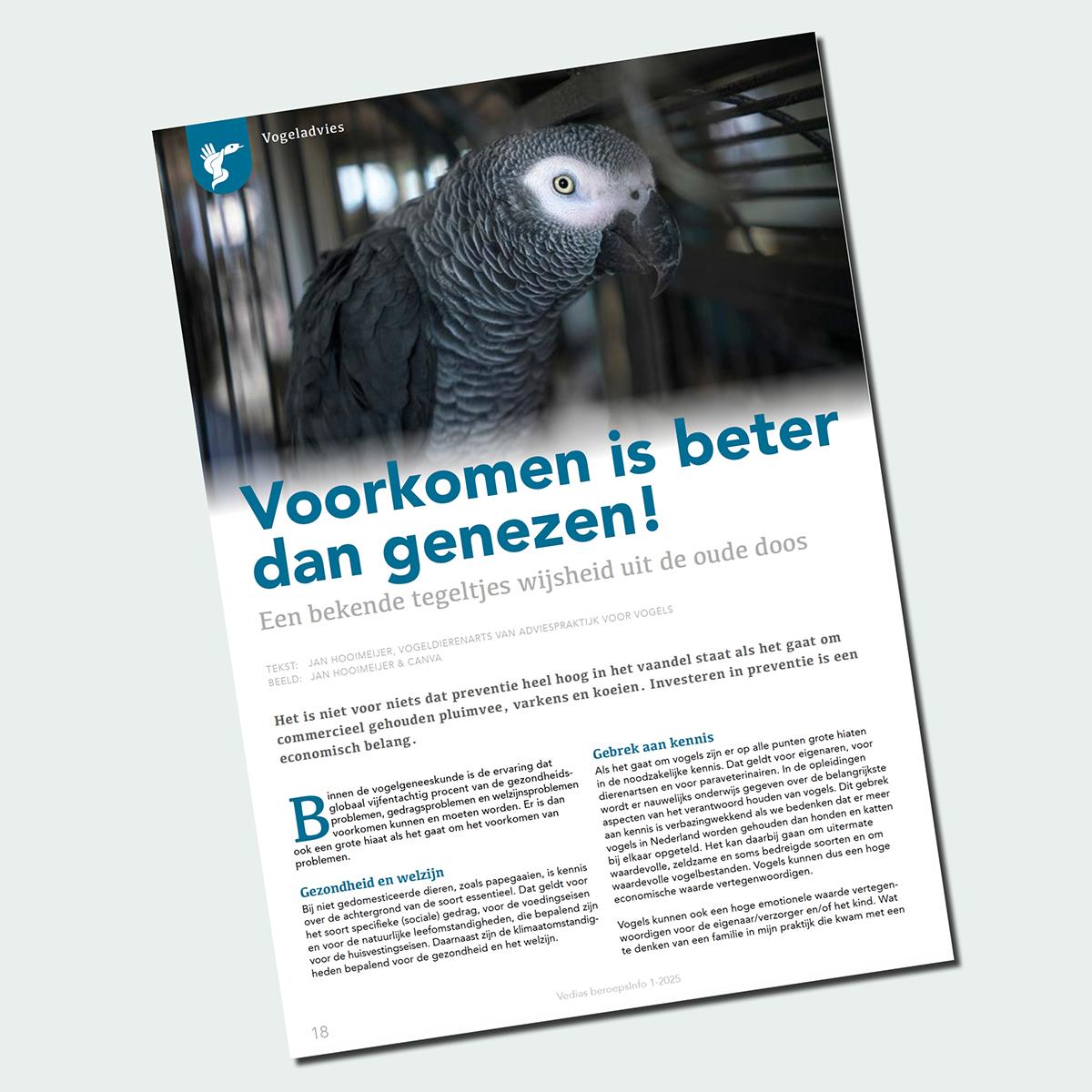 Vedias, dé beroepsvereniging voor paraveterinairen en dierenartsassistenten heeft inmiddels 1500 leden en geeft onder haar leden ook periodiek het magazine ‘Vedias Beroepsinformatie’ uit. Drs. J. Hooimeijer werd gevraagd om een bijdrage te schrijven voor het themanummer Preventie.