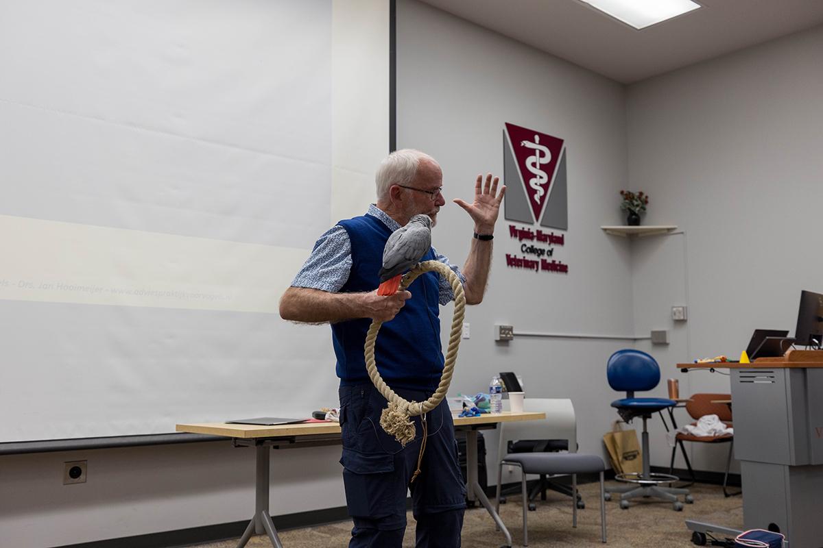 In het weekend van 3 mei 2025 reisde Jan Hooimeijer ‘even’ af naar Virginia (USA) om daar een tweedaags seminar te geven aan studenten Diergeneeskunde van Virginia-Maryland college of Veterinary Medicine, collega’s en eigenaren van papegaaien.